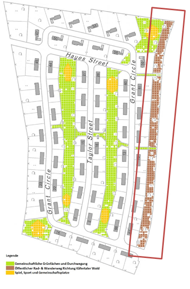 Hierdurch wird ein Teil des vorhandenen Grüns der Offizierssiedlung zu einem naturnahen Zugang aus dem Käfertaler Zentrum Richtung Käfertaler Wald - für alle Mannheimer.